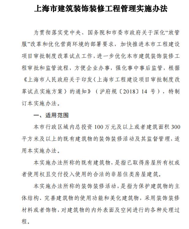 上海市辦公室裝修工程分為一般類裝修工程和特殊類裝修工程兩類。按照分類實行差別化管理、分類審批。一次申報多個建筑單體或者部位實施裝飾裝修,凡有一個及以上建筑單體或部位涉及特殊類裝修內(nèi)容,該裝飾裝修工程按照特殊類裝修工程進行審批。