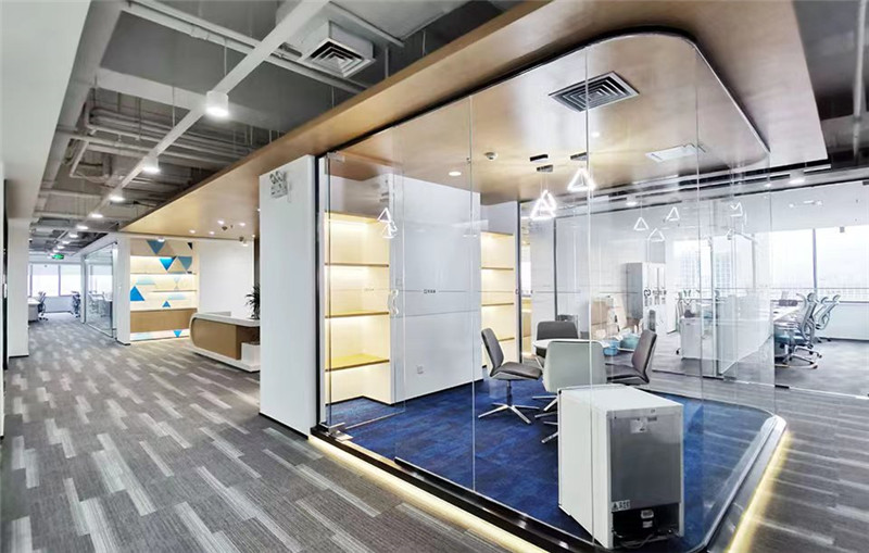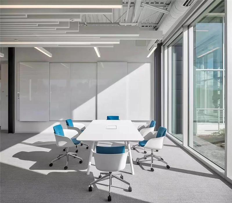 3、最后洽談室需要有一定的私密性,有時(shí)有客戶在洽談室會議時(shí),如果私密性不好也會讓人產(chǎn)生戒備的心理。所以洽談室如果使用了玻璃隔斷可以玻璃貼膜,或者墻面使用一半石膏板一半玻璃隔斷結(jié)合的形式來增加空間私密性。洽談室的空間色彩也可以使用不同于會議室的的活躍、明亮的多種顏色讓空間更加放松。