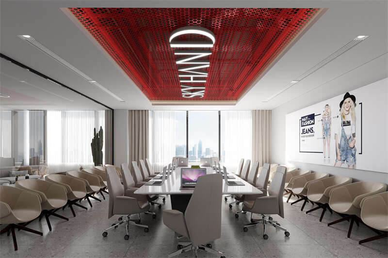 例如常用的暖色調為代表的紅色、黃色和橙色;紅色代表熱情、活潑、健康、希望等,但對人來說大面積使用紅色卻會使人敏感易怒,因此在設計和裝修過程中適合使用紅色給辦公室進行一些點綴,例如在柱子或者茶水區(qū)的墻面上做一些與地面或天花相呼應的造型;