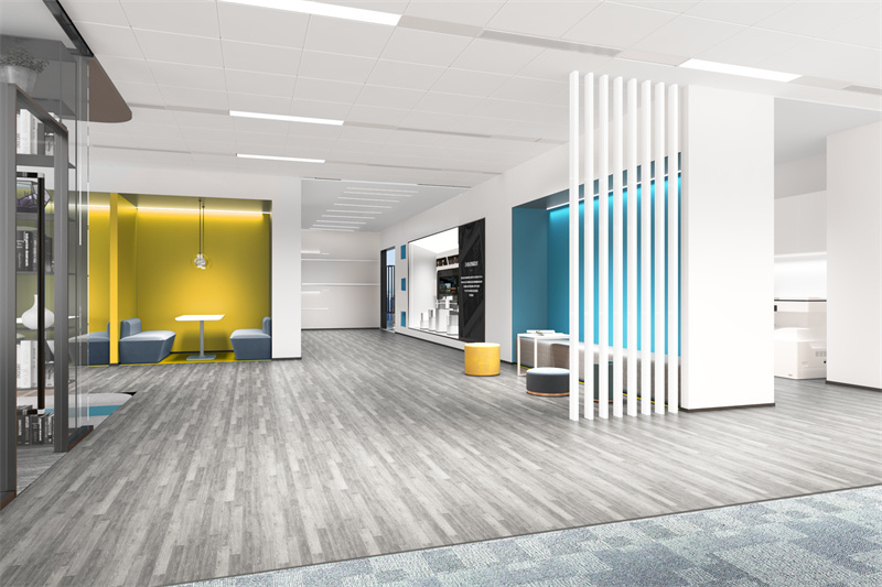 開(kāi)放式辦公區(qū)域:開(kāi)放式辦公區(qū)分為兩種,一種是半開(kāi)放式,一種是全開(kāi)放式,全開(kāi)放式辦公區(qū)是指一個(gè)完全敞開(kāi)的大空間,沒(méi)有任何隔斷,可以在辦公空間內(nèi)的任何一個(gè)角度看到每位員工的座位,半開(kāi)放式辦公區(qū)裝修公司在裝修的時(shí)候就要用高低不等的隔斷隔開(kāi)以區(qū)分不同的工作部門。開(kāi)放式空間辦公區(qū)的設(shè)計(jì)重點(diǎn)在于降低噪音干擾,在燈光設(shè)計(jì)上也要做到各個(gè)工位都能照明均勻不能有炫光產(chǎn)生。開(kāi)放式辦公區(qū)域要以辦公功能和工作效率為先,對(duì)機(jī)電、空調(diào)、弱電系統(tǒng)等基礎(chǔ)設(shè)施的鋪設(shè)予以重點(diǎn)關(guān)注。