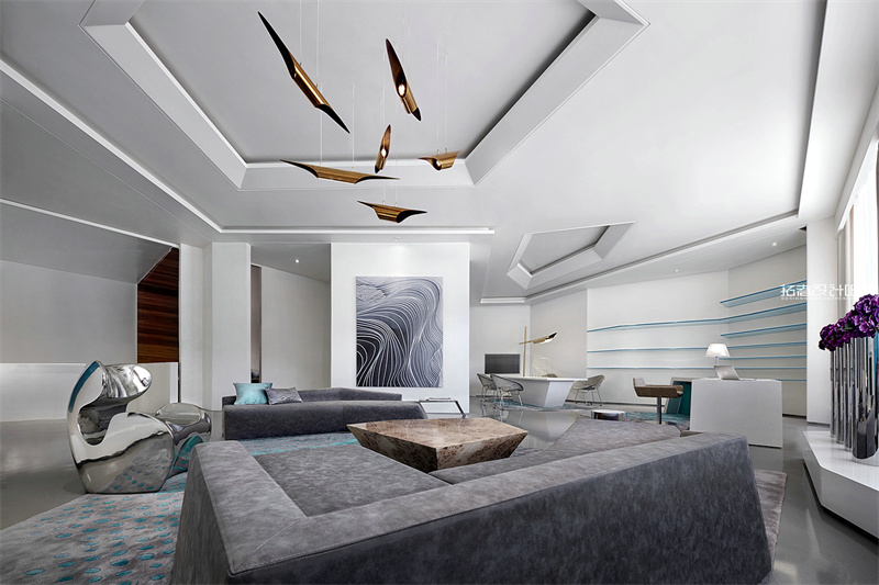 1)現(xiàn)代風(fēng)格:追求簡(jiǎn)潔大方的圖案,強(qiáng)調(diào)其功能性設(shè)計(jì),選擇簡(jiǎn)單流暢的線條,強(qiáng)烈的對(duì)比色,裝飾材料選擇多樣化,包括:鋁、鋼、亞克力、玻璃等。