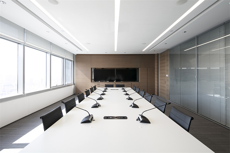 2.上海辦公室在設(shè)計裝修時,應(yīng)在公司大門附近設(shè)置會議室,讓來訪者進入公司后直接通過接待區(qū)進入會議室,從而在空間上與辦公區(qū)隔開。這種模式適用于金融行業(yè)、IT行業(yè)等涉及商業(yè)秘密較多的企業(yè)。