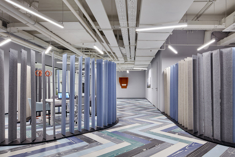 空間業(yè)態(tài)的規(guī)劃會產生很大的影響。創(chuàng)建一個緩沖區(qū)可以減輕這種不幸的影響??梢杂谜故竟窕蛘呤占{柜來緩沖,可以緩解空間不通暢的尷尬局面,也可以讓實用性更高,收納空間更大,辦公室看起來更簡潔。